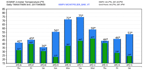 Average lows in the upper 20s to around 30. Normal highs in the upper 40s to low 50s