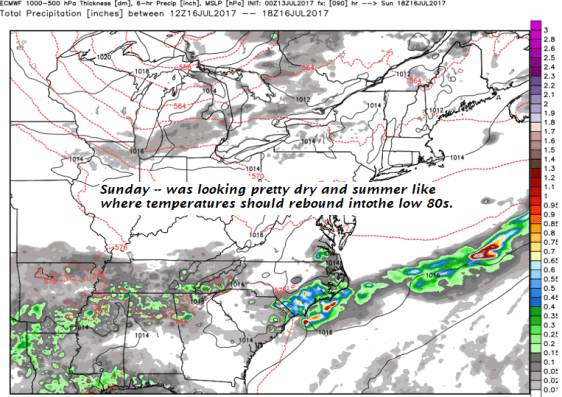 SATURDAY: Morning clouds with a chance for showers exiting. Otherwise partial afternoon sunshine. A high in the mid 70s.