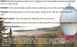 TONIGHT: Clear and partially moonlit. Patchy valley fog. A low in the mid 40s. Little wind.