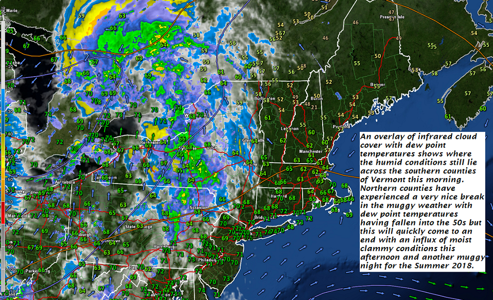 TUESDAY: Morning fog then more sun than clouds. Chance for an evening shower or thunderstorm and becoming more humid . A low in the in the mid to upper 50s. A high mid 70s to lower 80s.