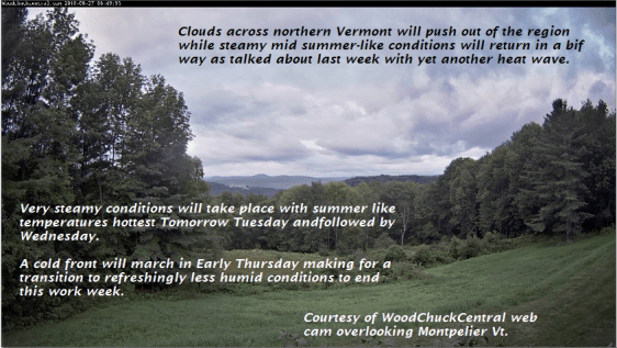 TODAY: Partly cloudy this morning then increasing sunshine, warm and very humid. A high mid to possibly upper 80s. Light west winds.
