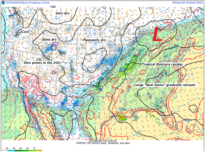 THURSDAY: Scattered showers early, then partial afternoon sunshine. Becoming cooler and less humid in the afternoon. A high in the low 70s. Northwest breeze 10 to 20 mph.