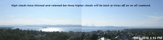 SUNDAY: Filtered sunshine through high cloudiness. Clouding up late. Still cool. A high 60 to 65. Light northeast winds.