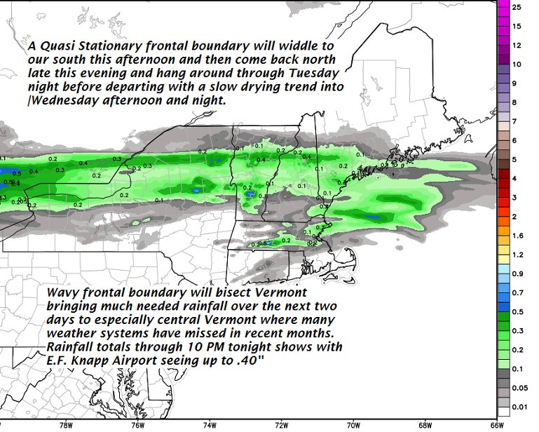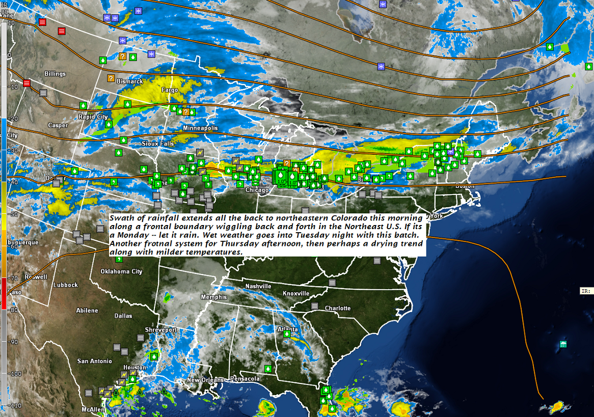 TUESDAY: Gray. Periods of rain or showers some moderate to heavy at times. Maybe a rumble of thunder western and southern areas. A high in the mid 50s. East to southeast breeze 10 mph.