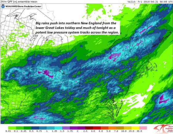 TODAY: Gray and overcast. Scattered light morning showers blending into periods of rain…moderate to locally heavy at times. Risk of thunder later on. A high around 70. Light southeast winds.