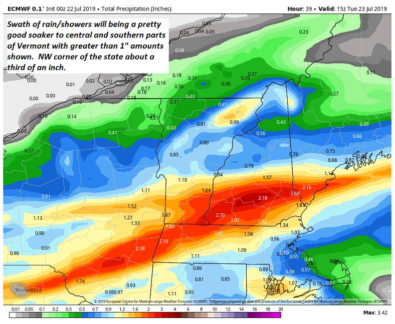 TUESDAY: Morning clouds with lingering showers eastern Vermont, exiting to partial afternoon sunshine. Pleasant and comfortable. A high in the mid 70s. Light northwest winds.