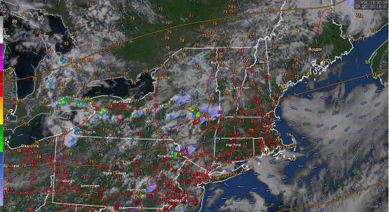 SUNDAY: Partly sunny and continue muggy. Widely scattered showers. A high about 80.Light southwest winds.