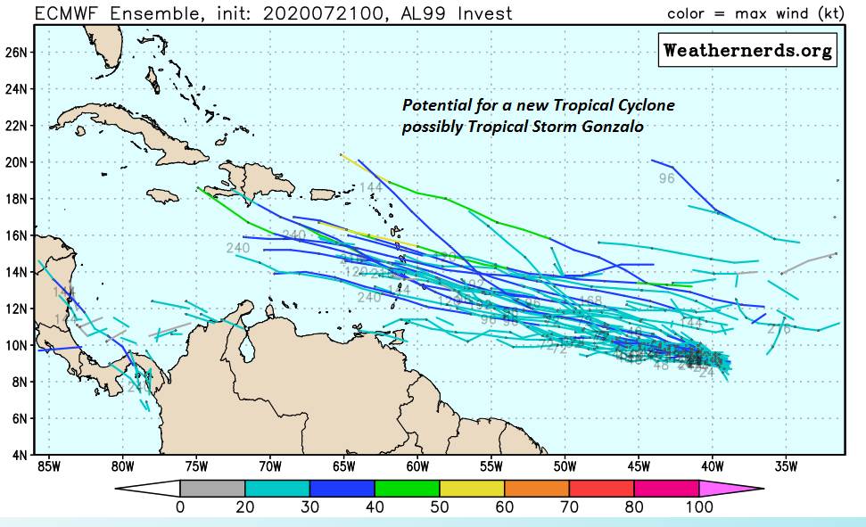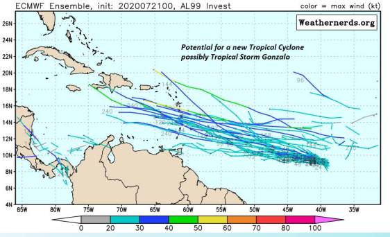 MONDAY: Partly sunny. Isolated afternoon thunderstorms. A low in the mid-60s. A high upper 80s to near 90.