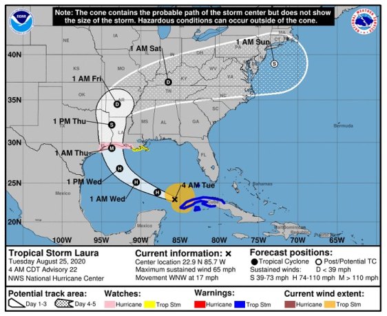 SATURDAY: Considerable cloudiness. Chance of showers and possible thunderstorms. A low in the mid-50s. A high around 70.