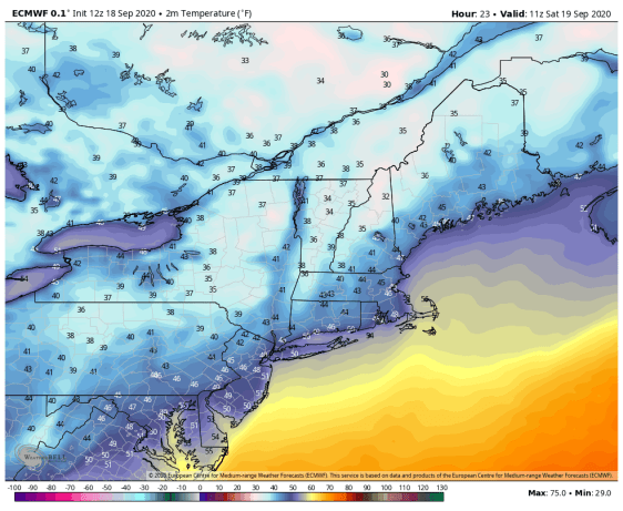 SATURDAY NIGHT: Clear and frosty. A low around 32 degrees. Light northwest winds.