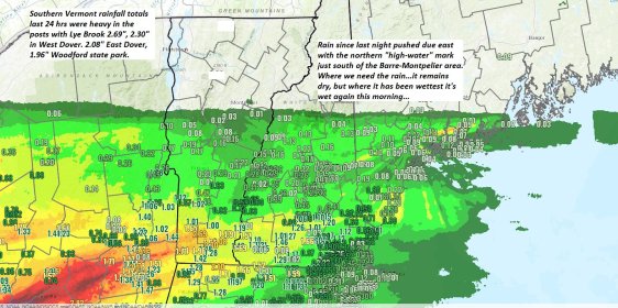 TODAY: Gray skies with a period of light rain toward Rutland exiting early. Breaks of sun later this afternoon. A high in the mid-70s. A light east to southeast wind.