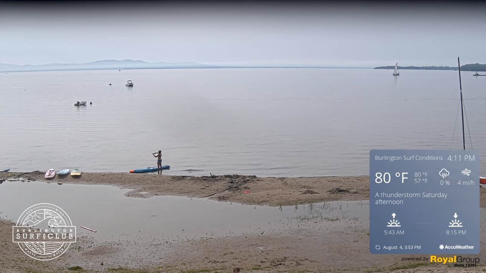 Warmest surface water temperatures early August based off local lake climatology.