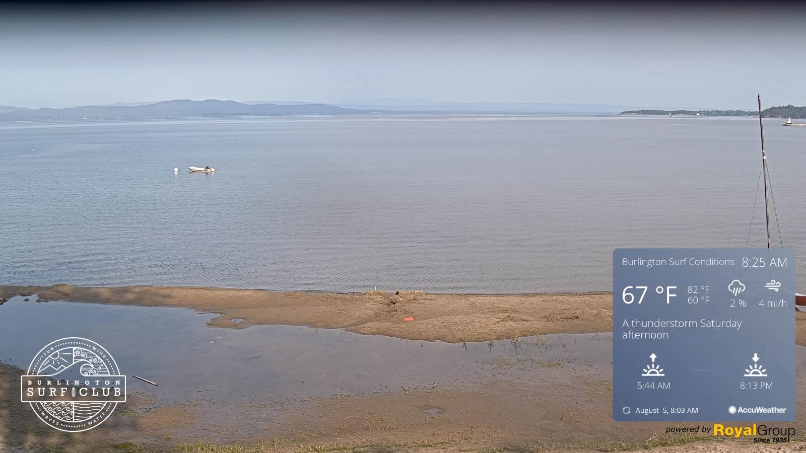 Warmest surface water temperatures early August based off local lake climatology.