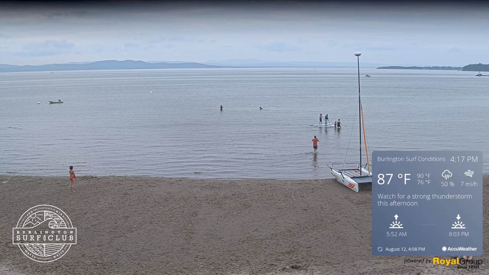Warmest surface water temperatures peaking based off local lake climatology.