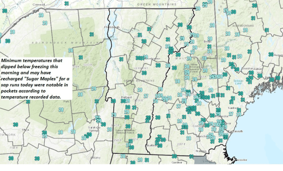 FRIDAY NIGHT: Thickening clouds. Rain showers becoming likely after midnight. A risk of isolated slick spots far eastern Vermont valleys. A low ranging 35 to 45…coolest Northeast Kingdom. Light east winds.