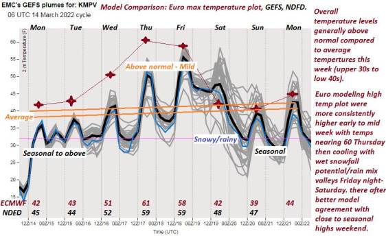 Average lows ranging mid-teens thru low 20s. Average highs upper 30s to low 40s.