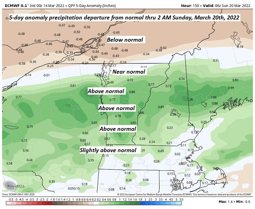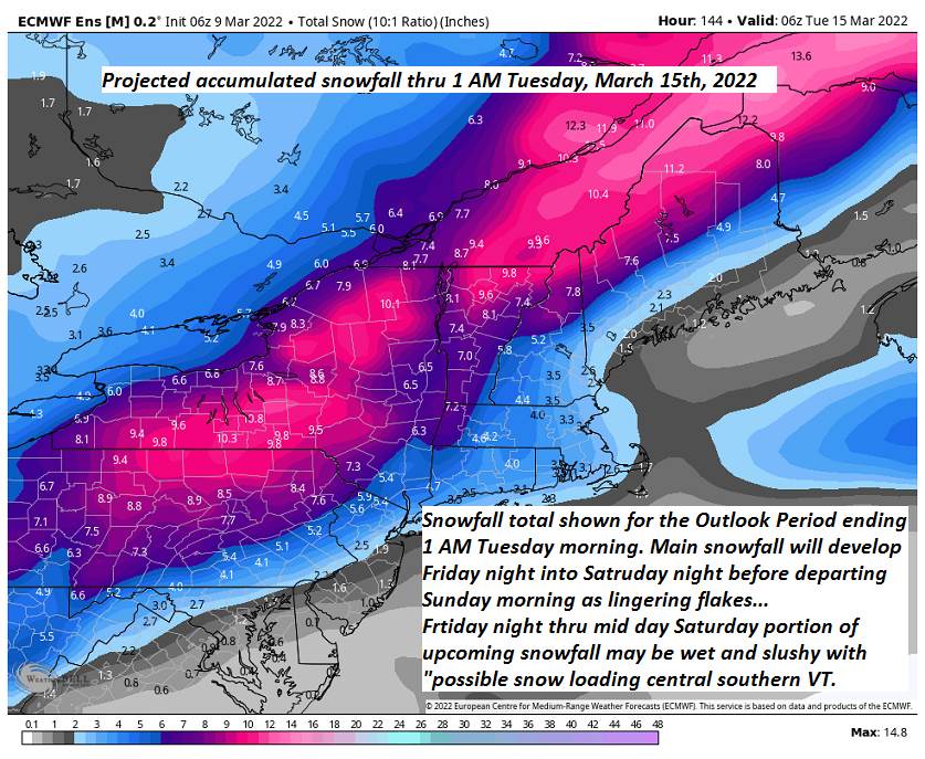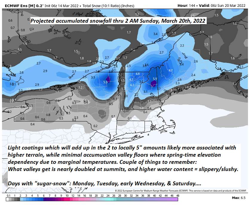 SUNDAY: Scattered rain showers…mixed with wet snow flakes higher terrain. Maybe a few breaks of afternoon sun. A high ranging upper 40s to around 50.