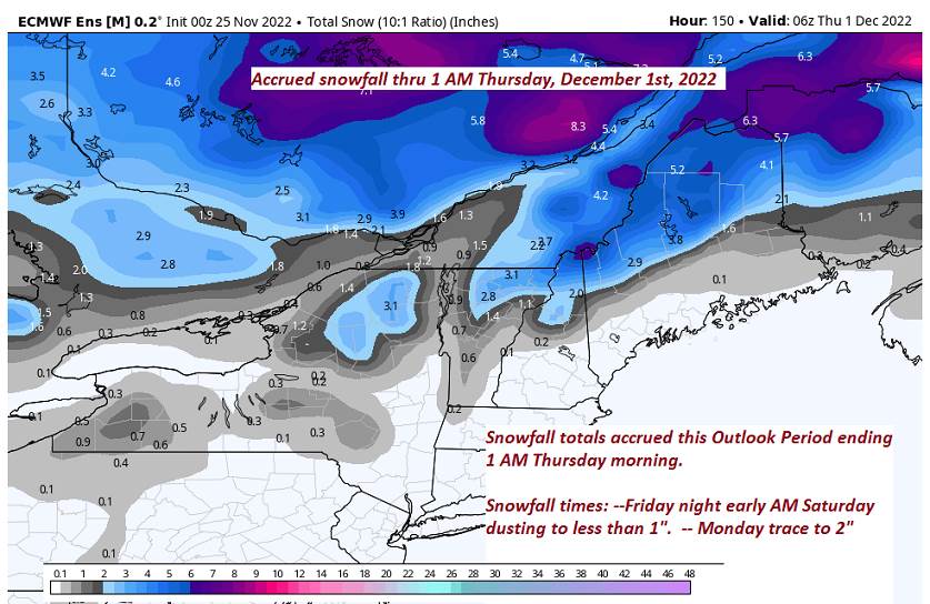 MONDAY: Gray & blustery at times. Chance for rain…mixed with accumulating wet snow of a couple/few inches possible above 2000 ft. A high 35 to 40.