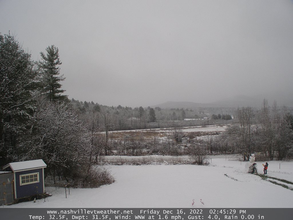 TONIGHT: Cloudy. Periods of accumulating wet snow moderate at times. Additional accumulation about 2 to locally 6” valleys & 4 to 10” additional Green Mountains/high terrain. A low 30 to 32. Light north to northeast winds.