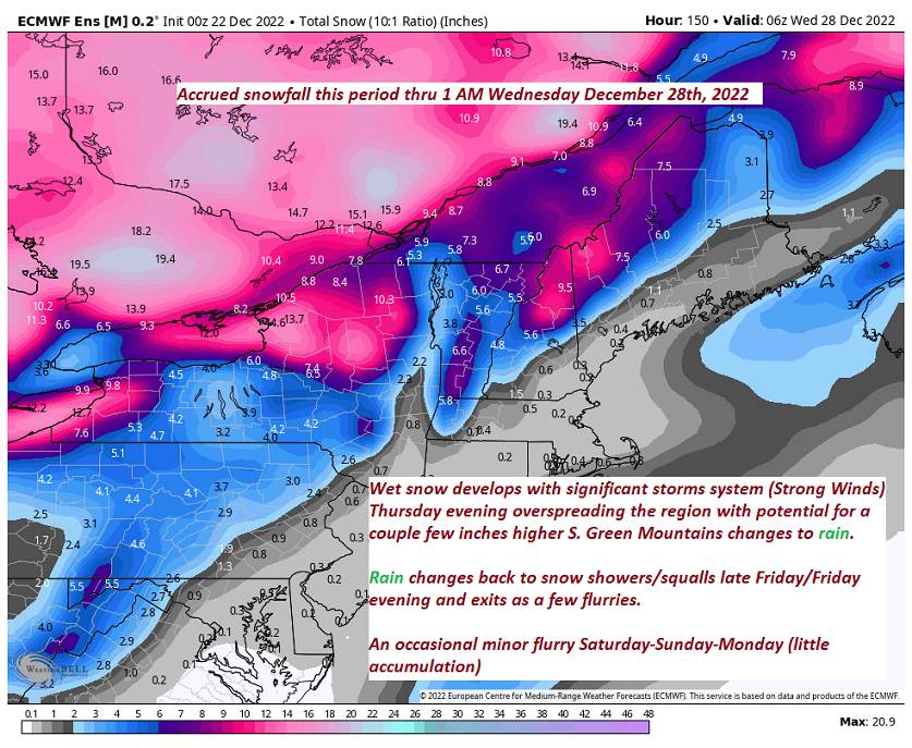 TOMORROW: Gray. Periods of wind-blown rain, or showers. Much milder. Temperatures peak upper 40s near 50. Southeasterly winds 15 to 30 mph with higher gusts western slopes of the Green Mountains exceeding 55 mph in the morning…decreasing some in the afternoon.