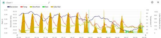 SATURDAY: Partly to mostly cloudy. Isolated to widely scattered afternoon showers, maybe a rumble of thunder. Gradual warming trend continues. A high mid-60s. Light and northwesterly winds.
