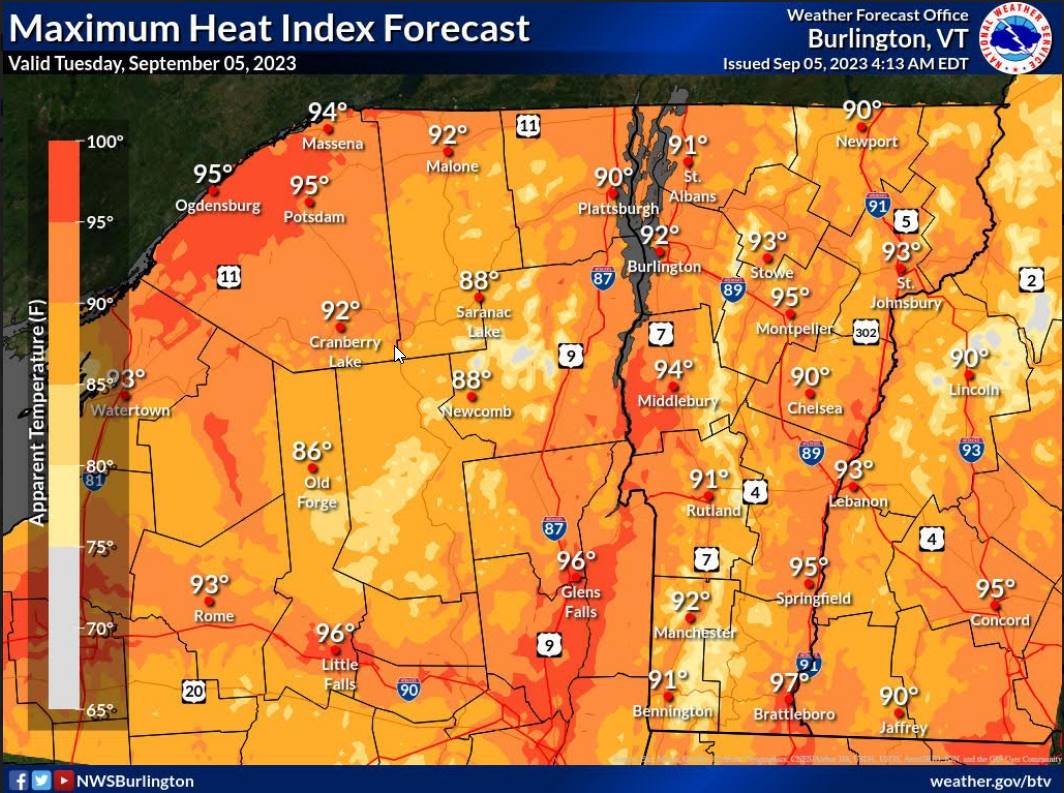 WEDNESDAY: Partly to mostly sunny. A high 85 to 90 with heat indices pushing into the upper 80s to mid-90s. Light northwest winds.