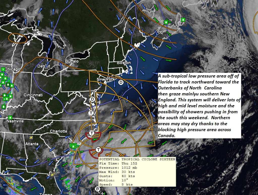 New Sub-tropical Low forms off Florida northbound Posted on September 21, 2023 by Weathering Heights This weather system will creep northward affecting our weekend weather. Share this: Share on X (Opens in new window) X Share on Facebook (Opens in new window) Facebook Like Loading... Related