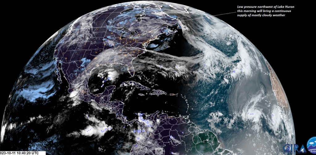 Weakening upper-level low-pressure system eventually tracks into the Saint Lawrence Valley late this week. Posted on October 11, 2023 by Weathering Heights Share this: Click to share on X (Opens in new window) X Click to share on Facebook (Opens in new window) Facebook Like Loading... Related