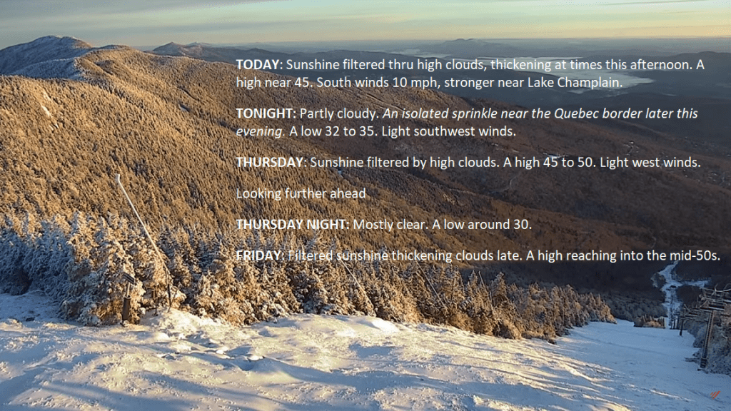 As low clouds depart, some filtered sunshine before high cloudiness thickens. The next real beefy weather system arrives Friday night and changes up the mild weather to below-normal in temperatures.