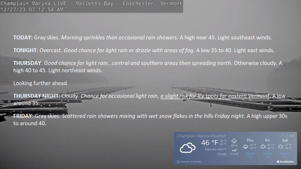 About as dreary as it gets in winter in the Green Mountain State and this just continues. Patches of snow fairly widespread even into the higher elevations now with snow-eating fog… Posted on December 27, 2023 by Weathering Heights Share this: Share on X (Opens in new window) X Share on Facebook (Opens in new window) Facebook Like Loading... Related