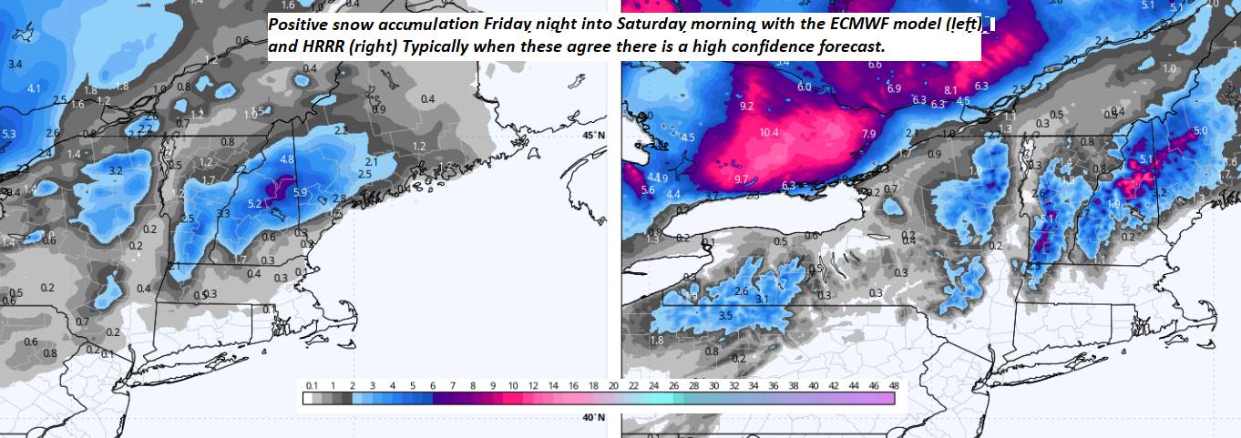 TONIGHT: Thickening clouds, leading to wet snow & a wintry mix around midnight with slick travel. Accumulation of about 1 to 2” valleys and 2 to locally 5” southern Green Mountains. Becoming windy, & milder. An evening low near 25 with temperatures rising to near freezing overnight. Southeast winds picking up 15 to 30 mph with gusts 45 to 65 mph western slopes of the Green Mountains.