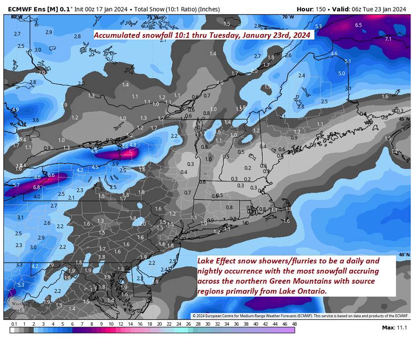 SATURDAY: Gray & cold. Persistent scattered mountain snow showers and valley flurries. A dusting to couple inches of fluff. A high near just 10 degrees.
