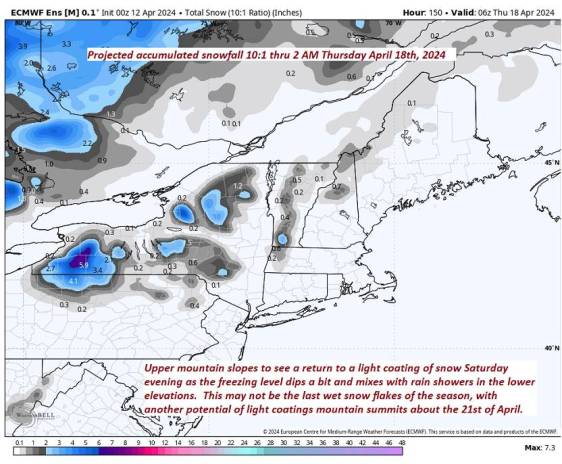 SATURDAY NIGHT: Lots of clouds, with scattered mountain showers of rain mixed with wet snow high terrain Partial overnight clearing. A low in the mid-30s. Southwest winds 10 to 15 mph.