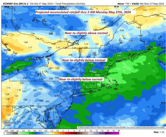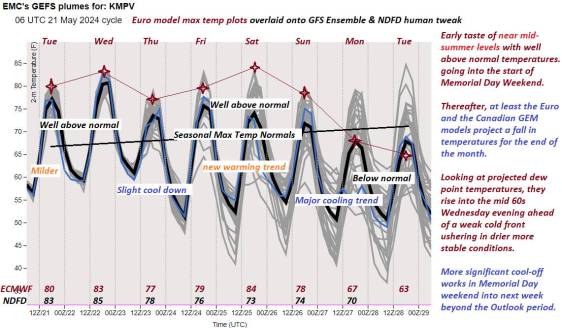 MONDAY MEMORIAL DAY: Lots of clouds. Chance for showers. Cooler. A low in the 50s. A high upper 60s to around 70.