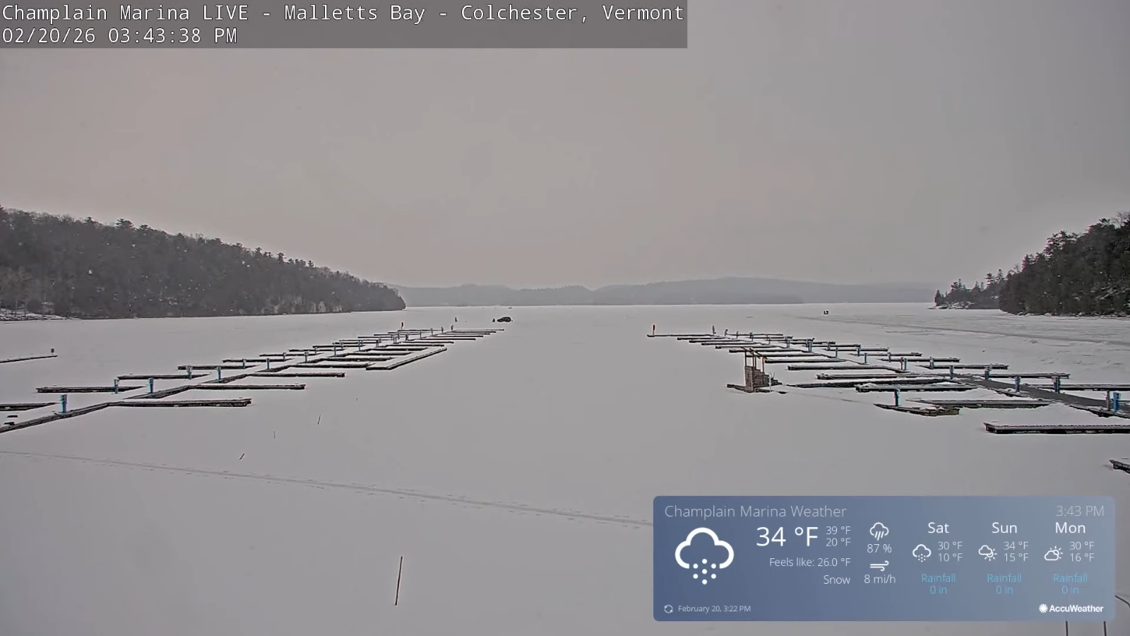 SUNDAY NIGHT: Scattered light snow showers or flurries southeastern Vermont with a light coating. Lows 5 to 15.