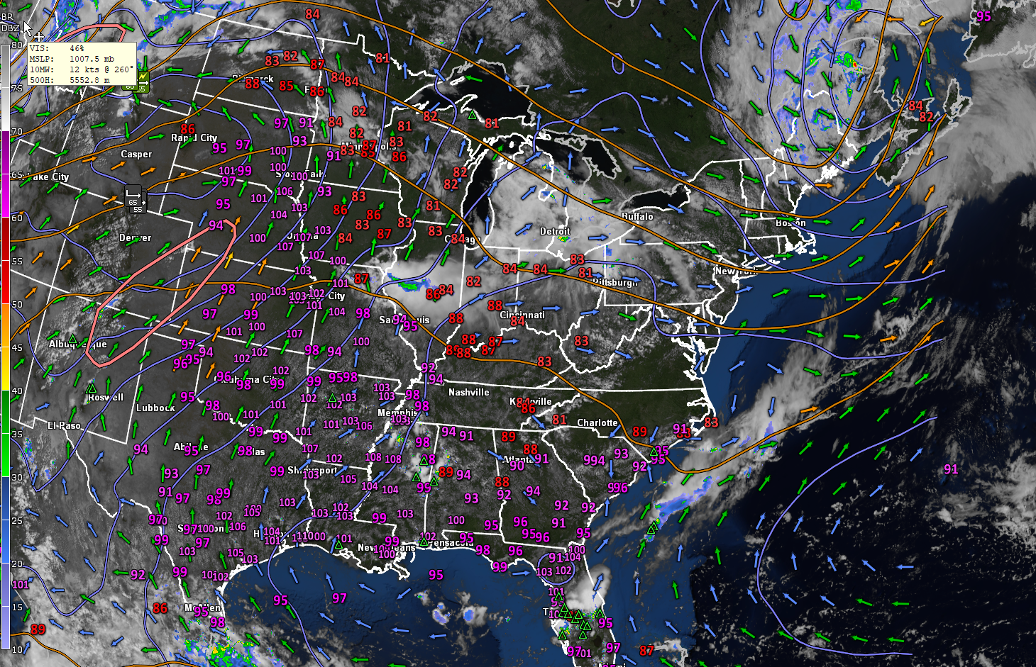 THURSDAY: Sunshine gives way to lots of clouds.Good chance for showers & thunderstorms…some possibly strong with heavy downpours in the afternoon. Muggy. An early high upper 70s near 80. Westerly breeze 10 mph.