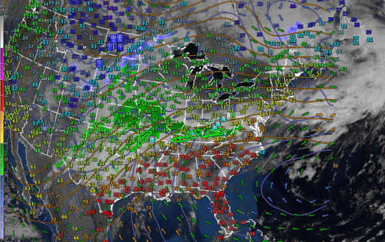 SATURDAY NIGHT: Overcast. Periods of light rain, with a risk for spotty freezing rain colder pockets. A low in the mid-30s. South winds 10 mph.