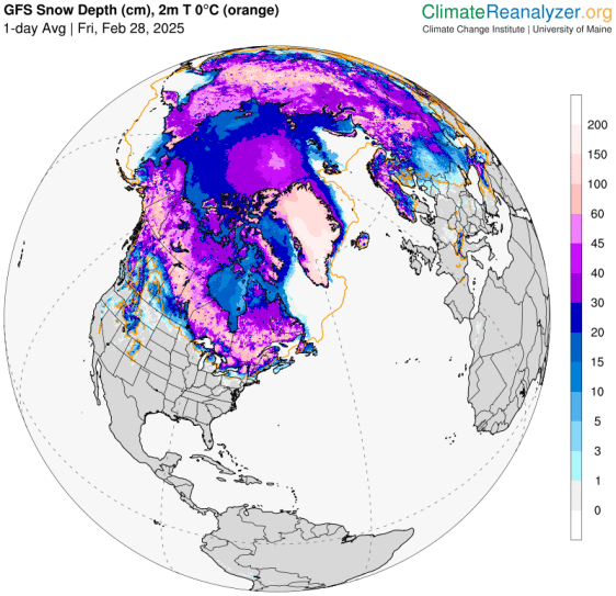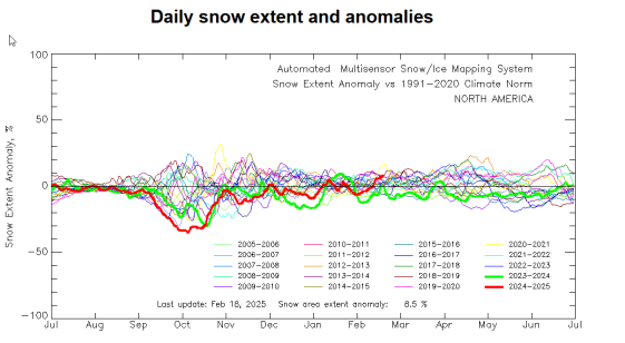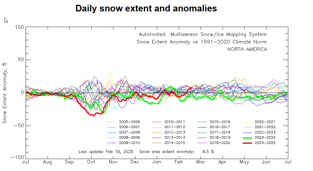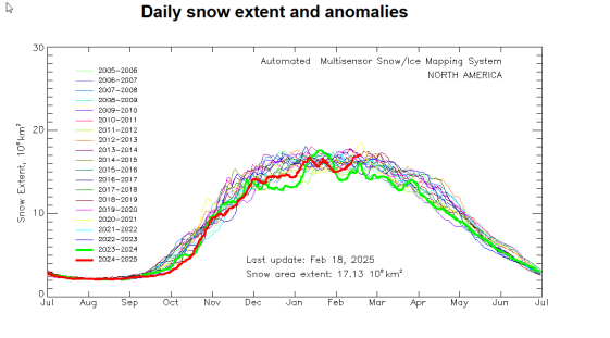 Montreal (CYUL) received a total of 70.8 cm (28") on February 13 (34.0 cm) and 15" (36.8 cm). This brings the total for Feb 1-16 to 93 cm or 36.6" as compared to only 39 cm or 15.3" during the entire month of January 2025 and 37.6 cm or 15.3" in December 2024.