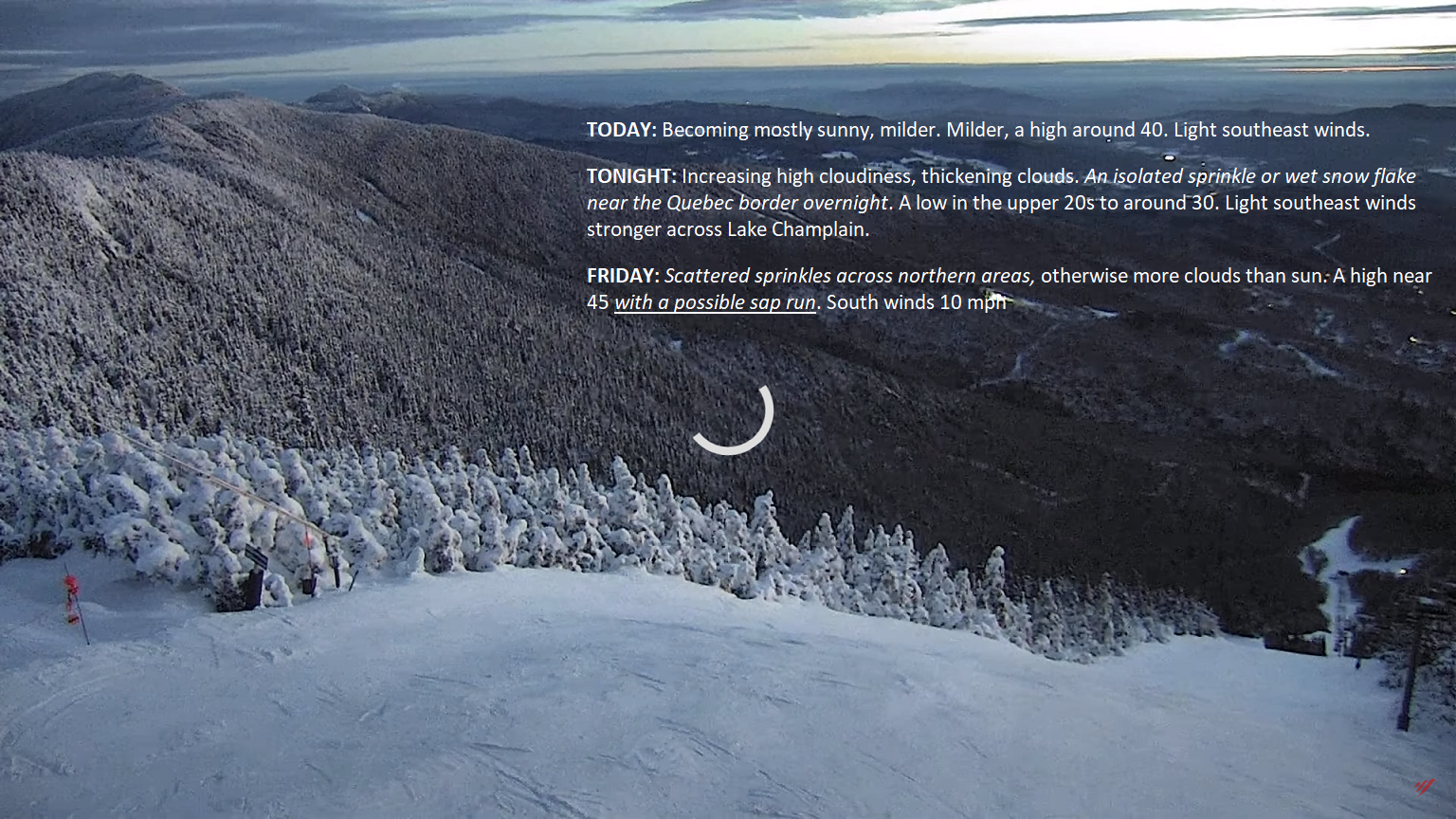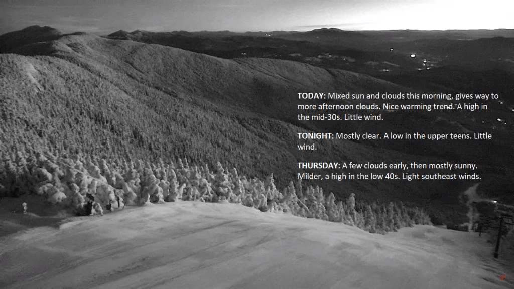 Pretty start to the day today, and dry with a major warm-up. Temperatures punch into the lower 30s today. A disturbance to our west across the Great Lakes region will track into Vermont this evening with a coating of snow tonight… Posted on January 22, 2024 by Weathering Heights