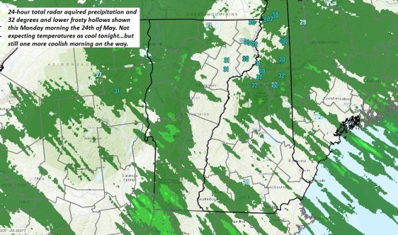 FRIDAY: High cloudiness, but thicker clouds southern areas with a period of showers south of Rutland. Rather cool. A high in the 50s.