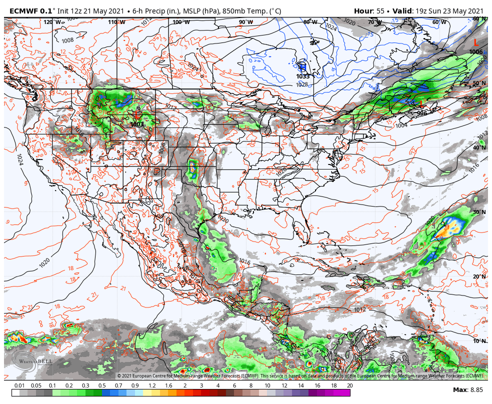 MONDAY MEMORIAL DAY OUTLOOK: Sunny. A low in the 40s. A high around 70.