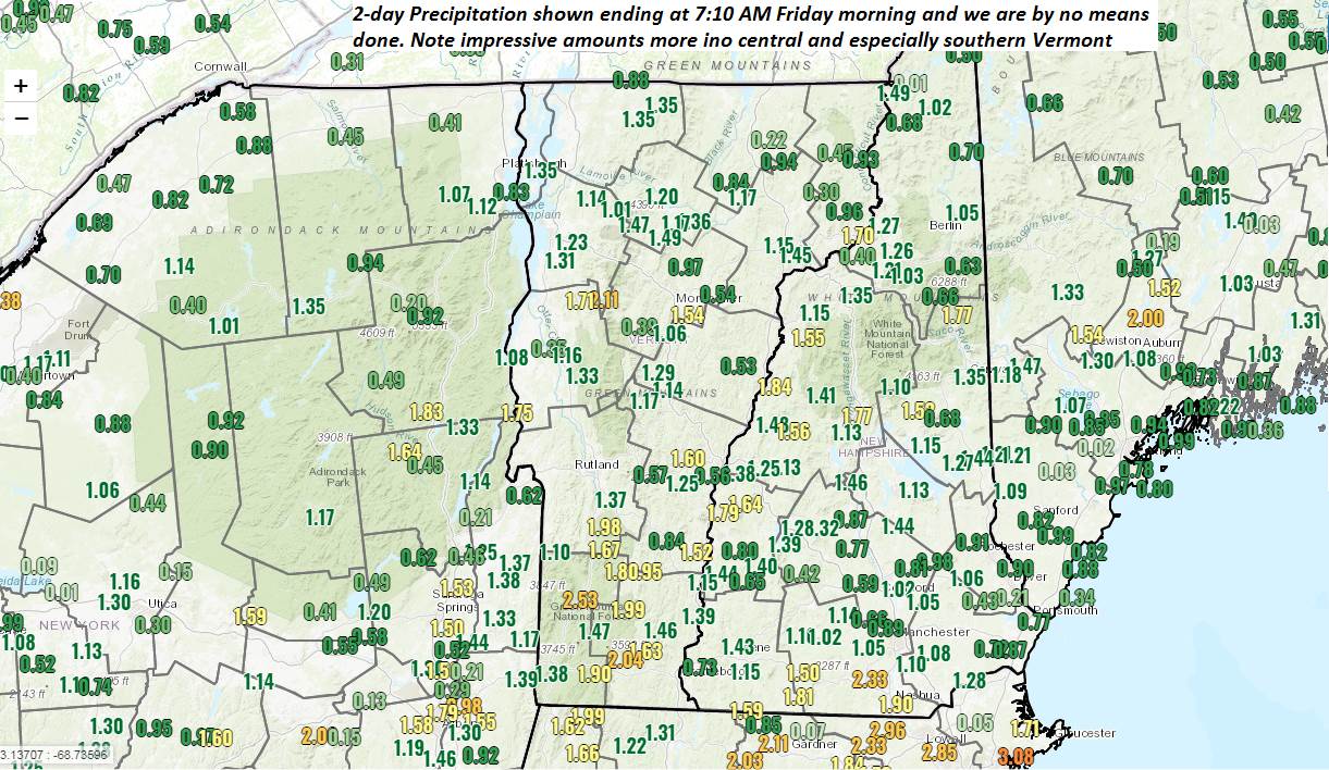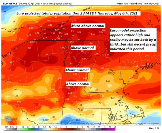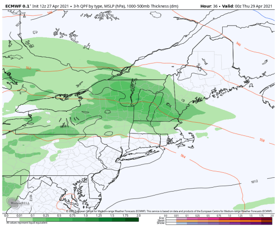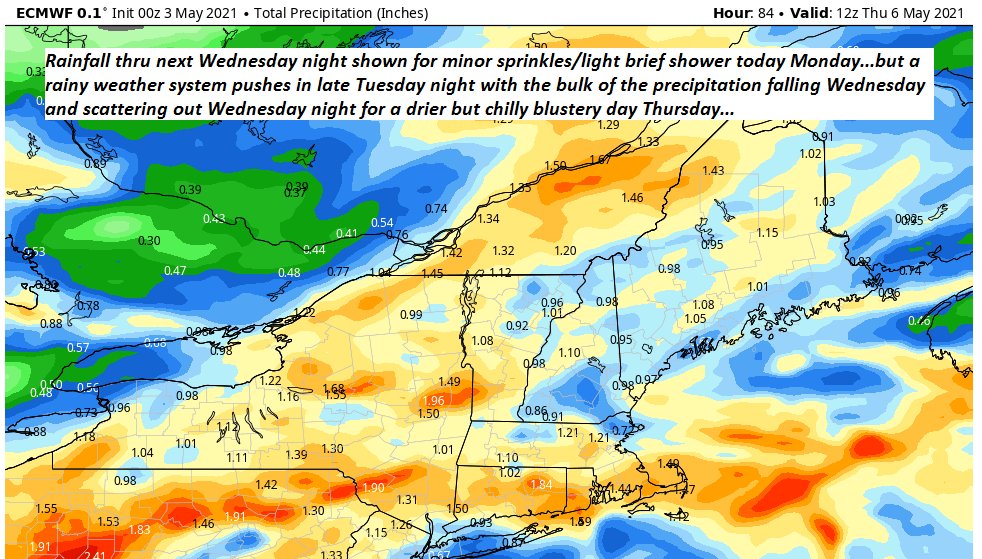 WEDNESDAY: Overcast. Rain likely…moderate at times. Breezy toward the Champlain Valley. A high low to mid 50s but pushing around 60 Champlain valley. Southeast winds 10 to occasionally 20 mph.