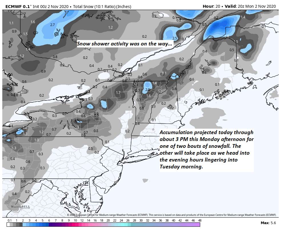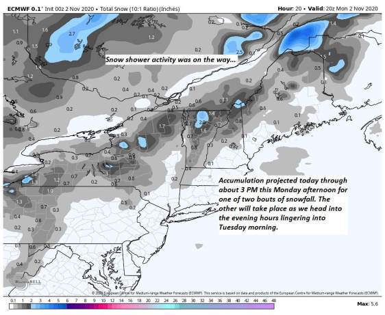 SUNDAY: Thickening clouds. Slight chance for showers in the afternoon. A low near 30. A high around 40.