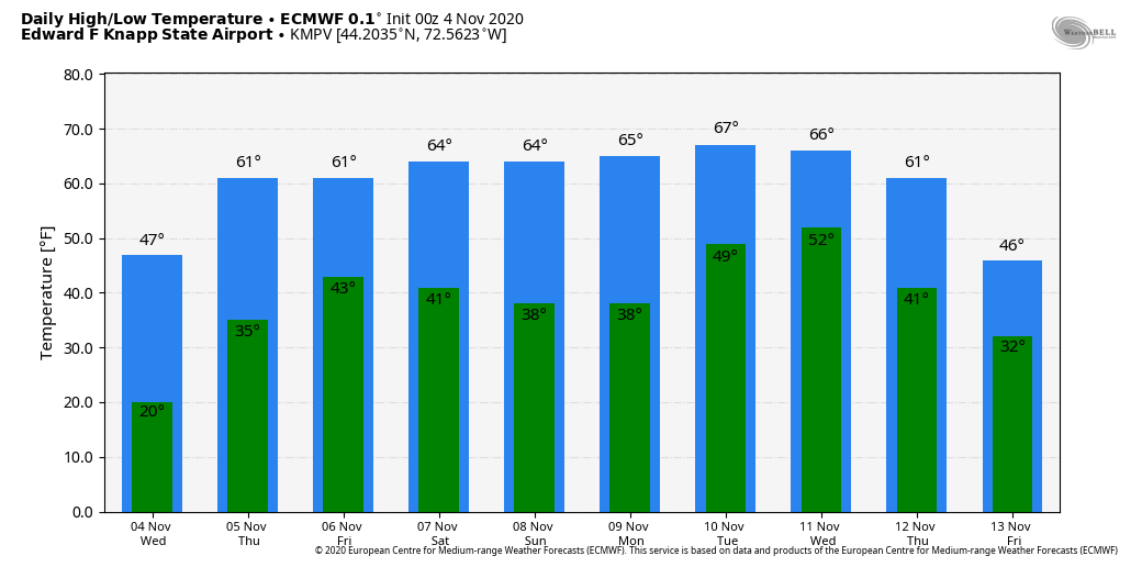 Average low ranging mid-20s to low-30s, Average highs mid to upper 40s.