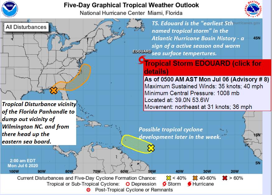 SATURDAY: Mostly cloudy. Chance for showers and thunderstorms some strong and locally heavy. Continued very humid, but not so hot. A low upper 60s to near 70. A high around 80.