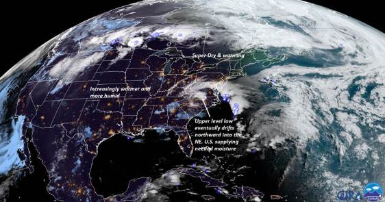 MONDAY: Isolated morning fog then mixed sun and clouds. Chance for late day thunderstorms. Sticky. A low around 65. A high mid to upper 80s.