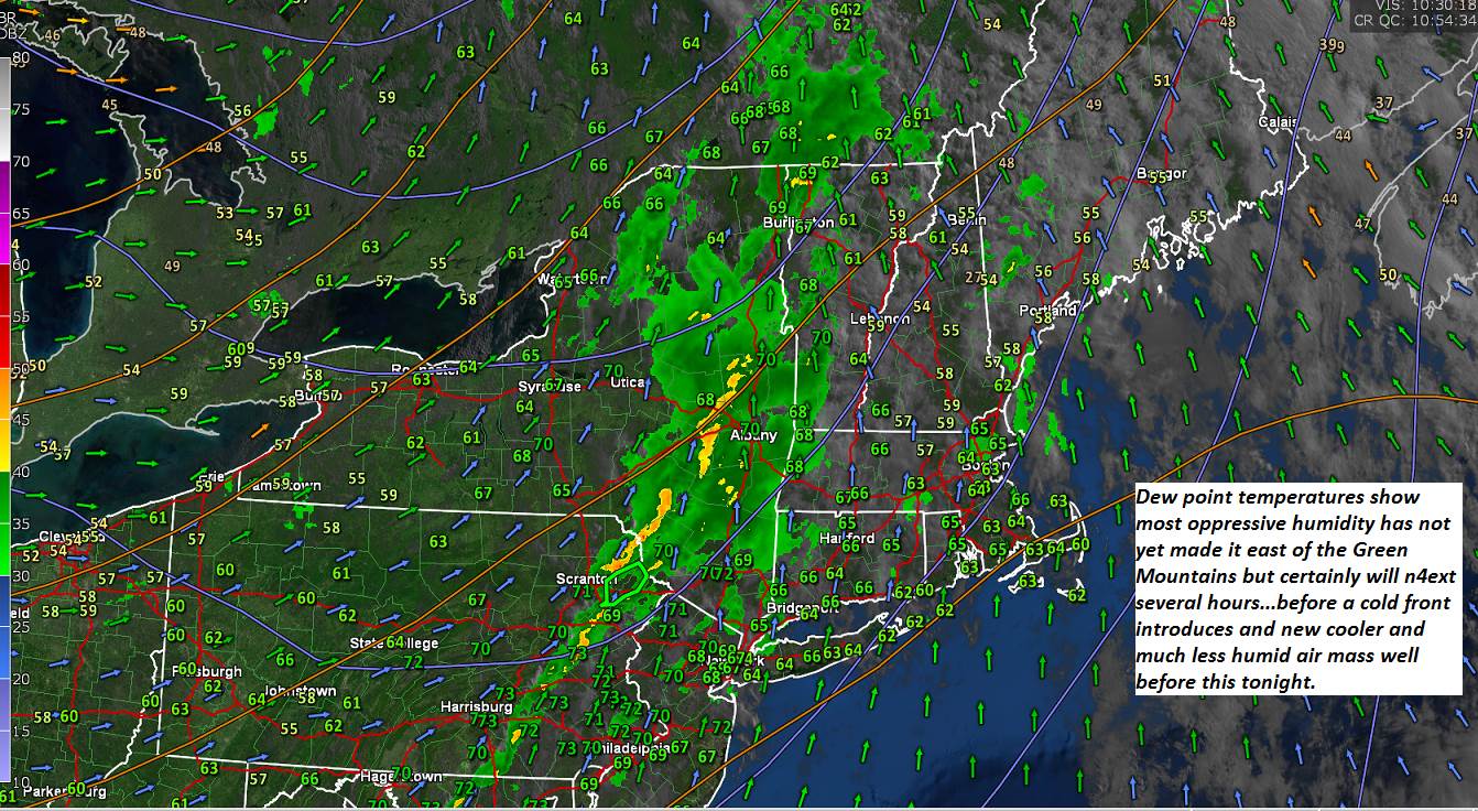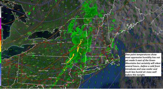 SATURDAY: Mostly sunny. Hot and more muggy. Widely scattered afternoon thunderstorms, mainly central and southern Green Mountains. A low in the low 60s. A high in the low 90s.