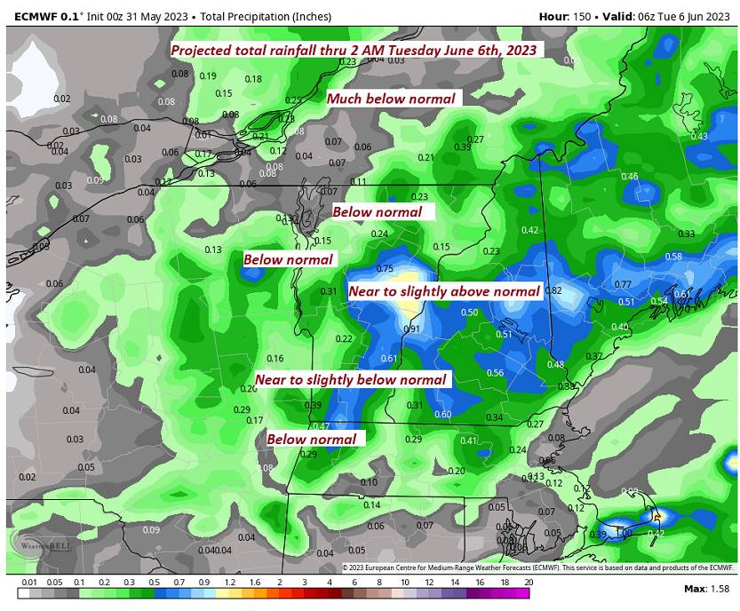 SATURDAY: Mostly cloudy. Scattered afternoon showers, with possible rumble of thunder & small hail. A low around 45. Gradual warming trend continues. A high in the mid to upper 60s.