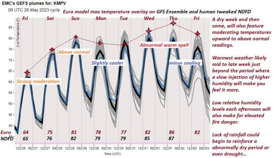 THURSDAY: Sunny with a few afternoon clouds. A high in the low 90s. Light north winds.